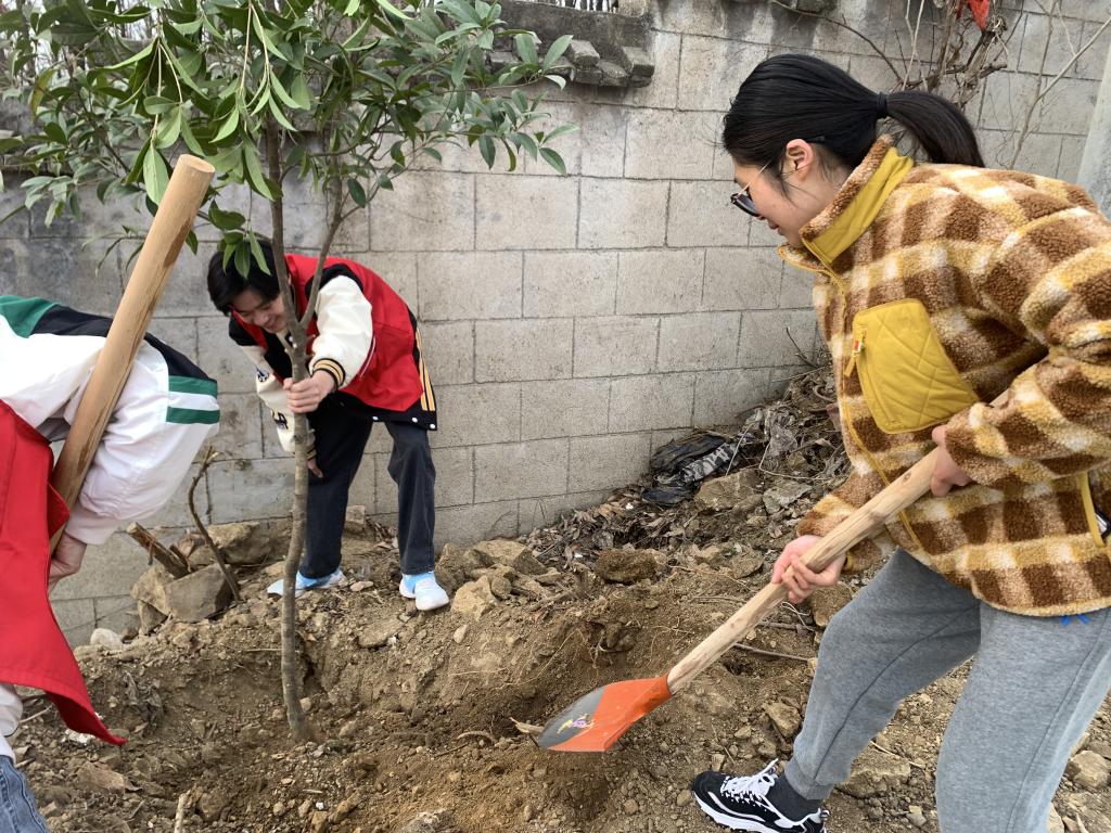 植树现场,青年学子们个个热情高涨、干劲十足,挥锹挖坑、扶树填土、提水浇树,相互协作,有条不紊。经过大家的共同努力,当天上午共植树100余棵,以实际行动践行绿色发展生态理念,助力美丽家园建设。