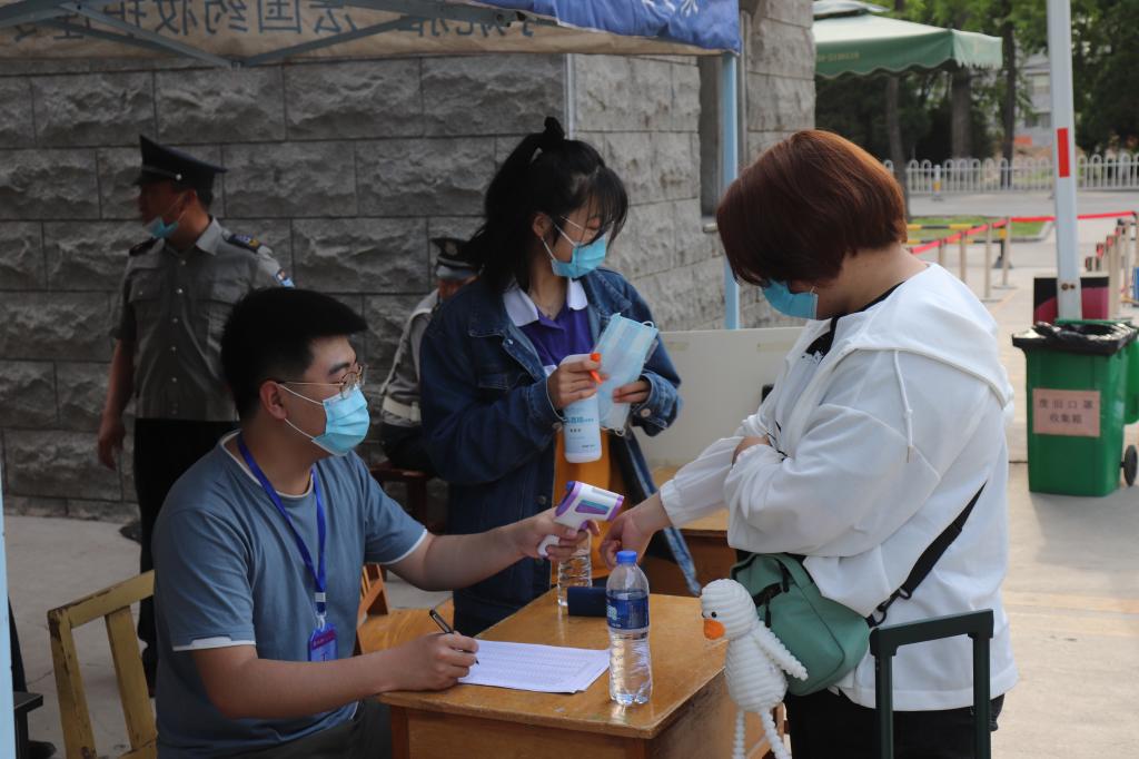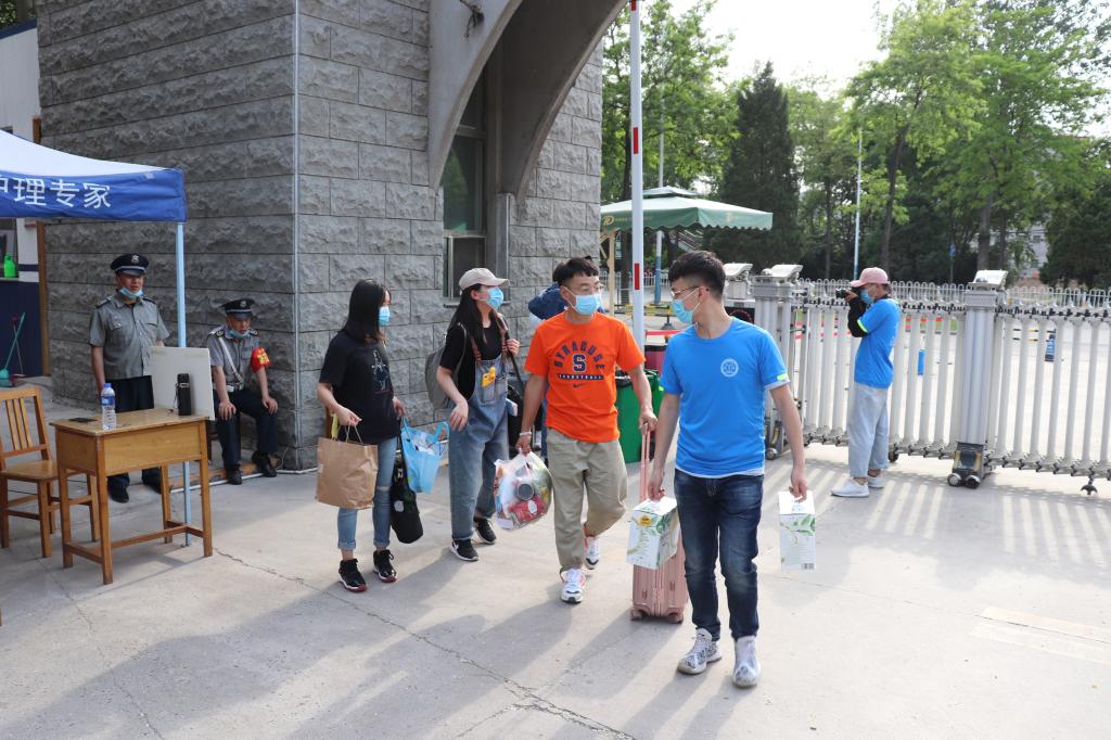 为确保学生安全返校,根据学生返程车次信息,安排大巴集中前往车站接站,将学生分别接至北校区校园正大门、捉马学生公寓大门和南校区西大门。返校学生均按要求佩戴口罩,在学校工作人员和学生志愿者的引导下,保持1米以上安全间隔有序排队,在消毒区逐一进行消毒,然后进行体温测量,体温测量正常进入健康信息登记区登记,经检查人员核查后进入学校。