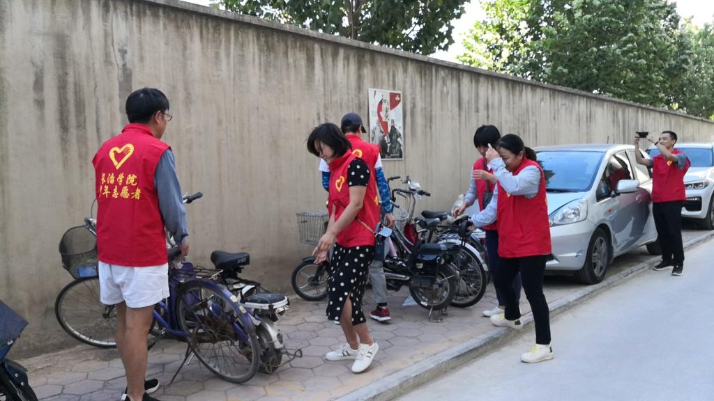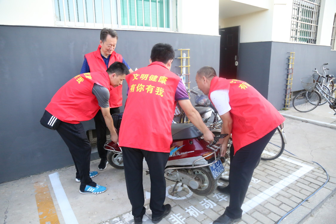 9月2号下午,党务一支部、党务二支部的志愿者们对校园和家属区无序停放的自行车、电动车进行排查和摆放,并对部分垃圾进行清理,给住户留下整洁的出行环境,还文明城市一个亮丽的风景。