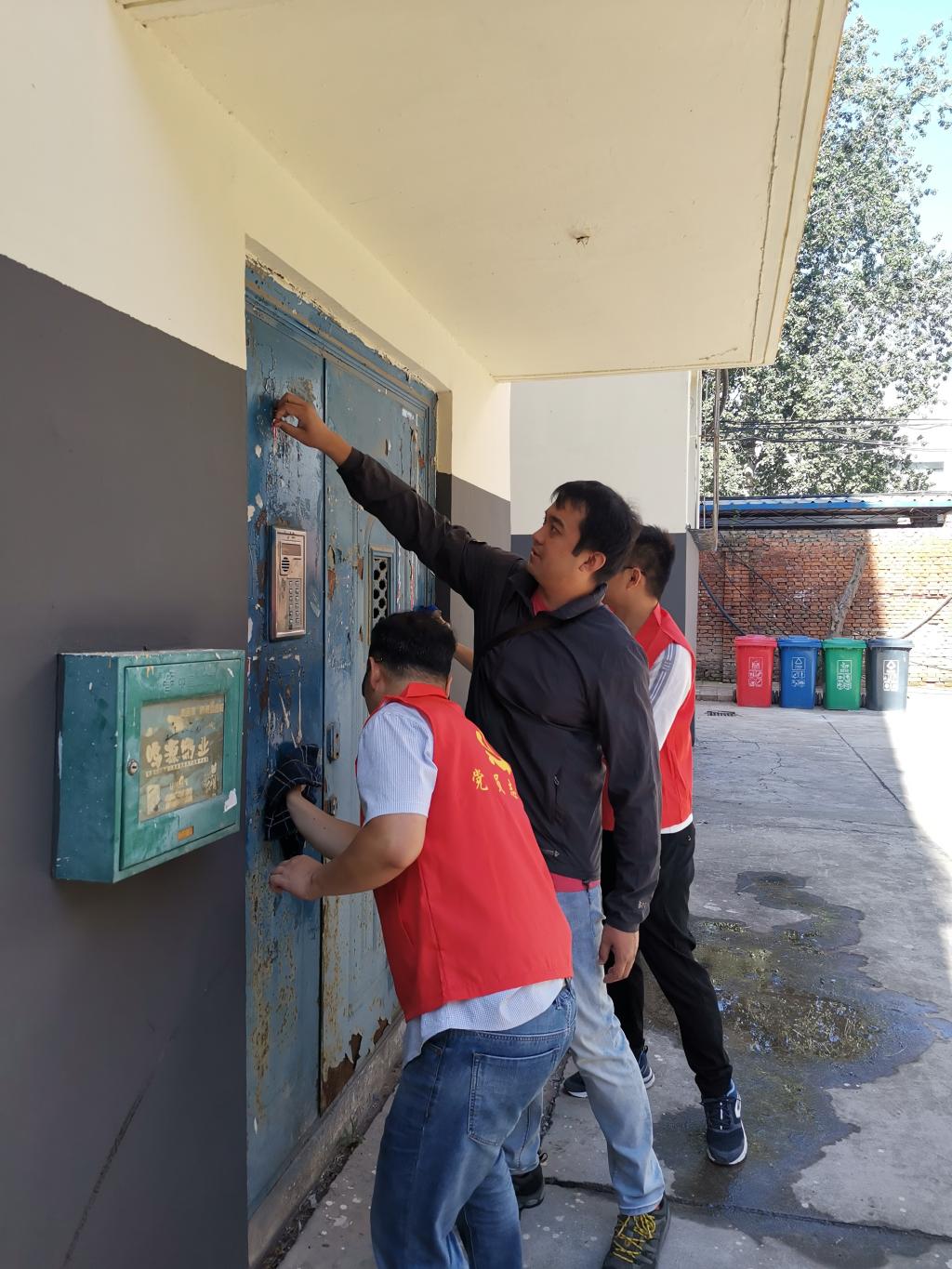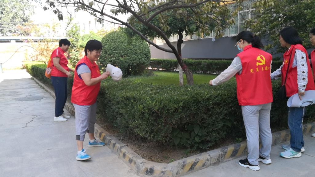 9月3日,各党总支(分党委)组织党员志愿者对家属区的公共环境卫生进行统一整治。志愿者们对小区里,尤其是地下室乱堆乱放的垃圾进行集中清理,与居民面对面讲解和宣传国家文明城市创建活动。