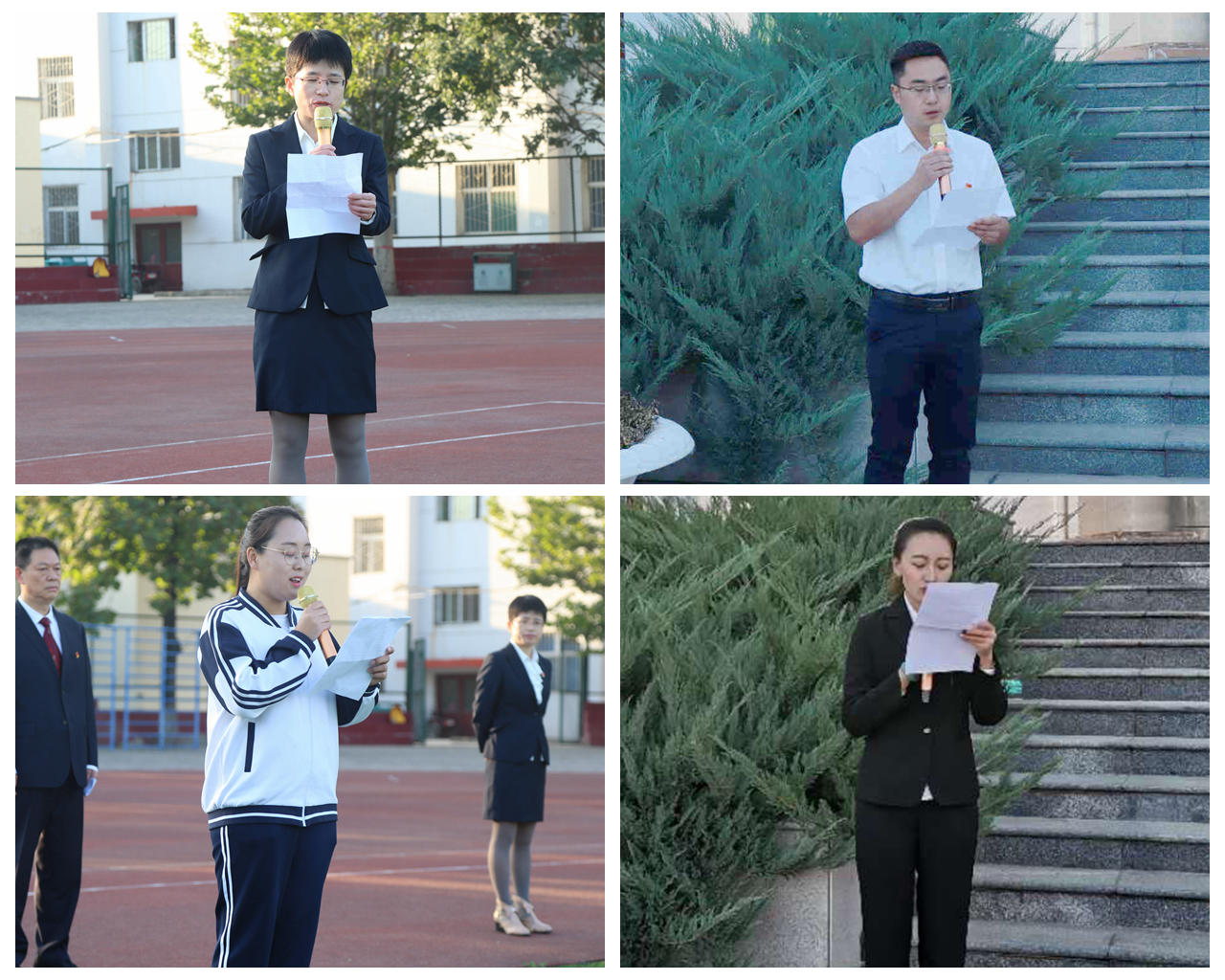 教师代表化学系党总支书记李燕、思政部黄文秀班班主任曹凡分别发言。他们表示,“九一八”事变是中华民族的一场国难。89年后的今天,所有中国人要铭记那一段屈辱历史,牢记“落后就要挨打”的惨重教训,奋发努力,振兴中华,担负起新时代的历史重任。张䶮和张雅鋆同学作为学生代表分别发言。他们表示,作为新时代大学生应不忘国耻,珍惜当下,努力学习,为中华民族伟大复兴中国梦贡献自己的力量。