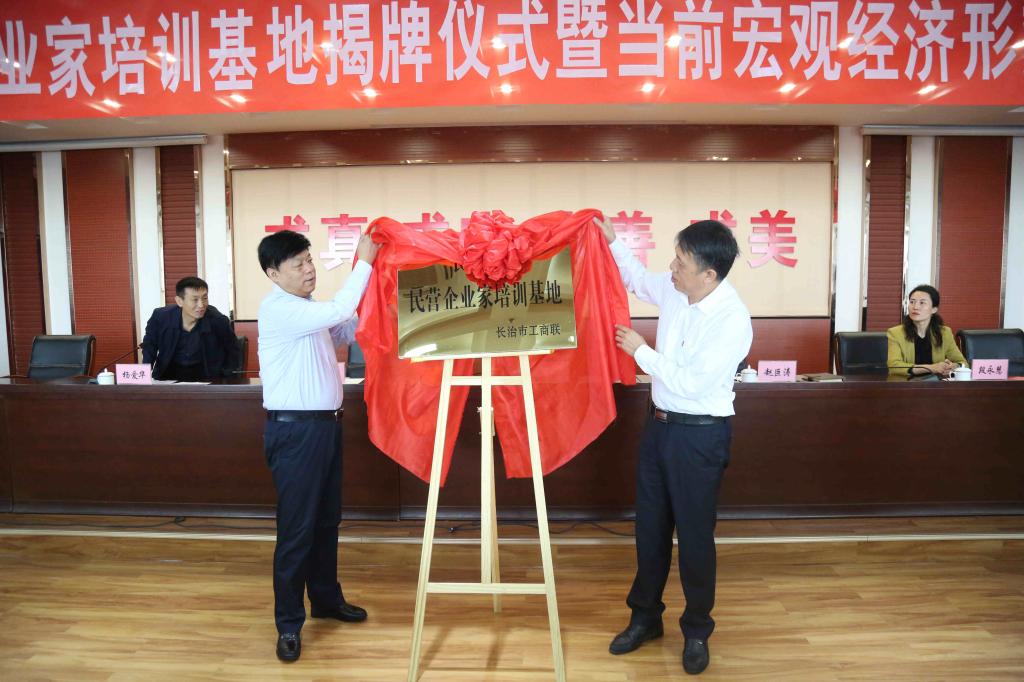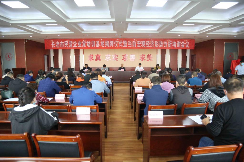 9月24日上午,长治市民营企业家培训基地揭牌仪式暨当前宏观经济形势分析培训会议在全讯白菜一号楼10层大会议室举行。校党委委员、副院长赵巨涛,长治市政协副主席、市工商联主席赵文栋,学校成人教学部负责人及部分市民营企业家参加会议。