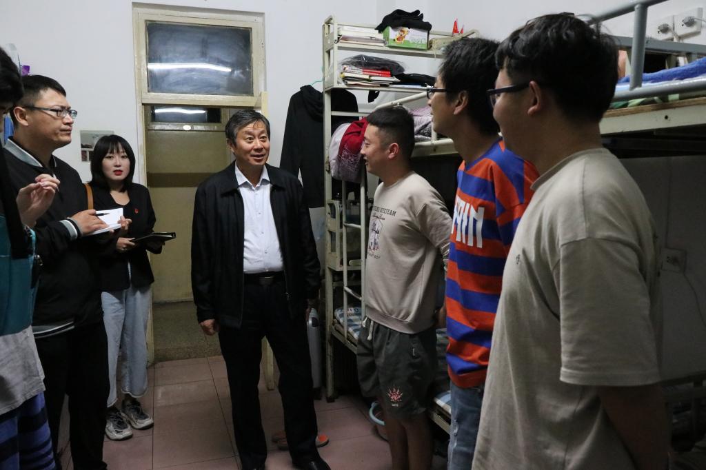 9月29日晚,在中秋节来临之际,院党委书记郝勇东,党委副书记、院长茹文明,党委副书记马健宏,纪委书记、监察专员成广海,党委委员、副院长赵巨涛,党委委员、副院长史晓东一行深入宿舍区看望学生并赠送中秋月饼致以节日的祝福。