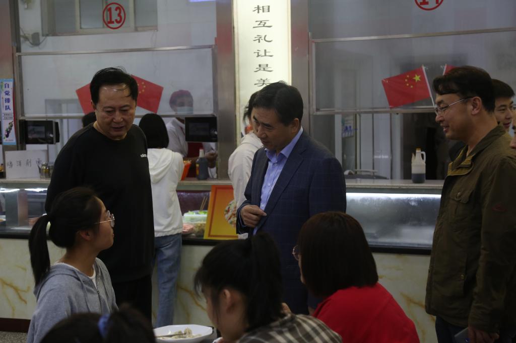 “今年因为疫情影响,课程安排时间紧张,学校决定缩短放假时间,同学们不能和家人一块儿过节。大家在学校吃得习不习惯?生活上还有什么困难没有?”在北校学生餐厅,茹文明院长每到一处就仔细询问同学们在校期间的学习生活情况,餐厅饭菜的质量,餐厅的卫生和食品安全问题。他向正在用餐的同学们送上节日的祝福。“每逢佳节倍思亲”。他嘱咐身边的工作人员,要牢固树立“以人为本”“以生为本”的理念,学生的事无小事。同学们远离父母和家人,一定要为他们创设优雅舒适安全和谐的校园氛围,保证他们度过一个温暖、祥和、快乐的中秋佳节。