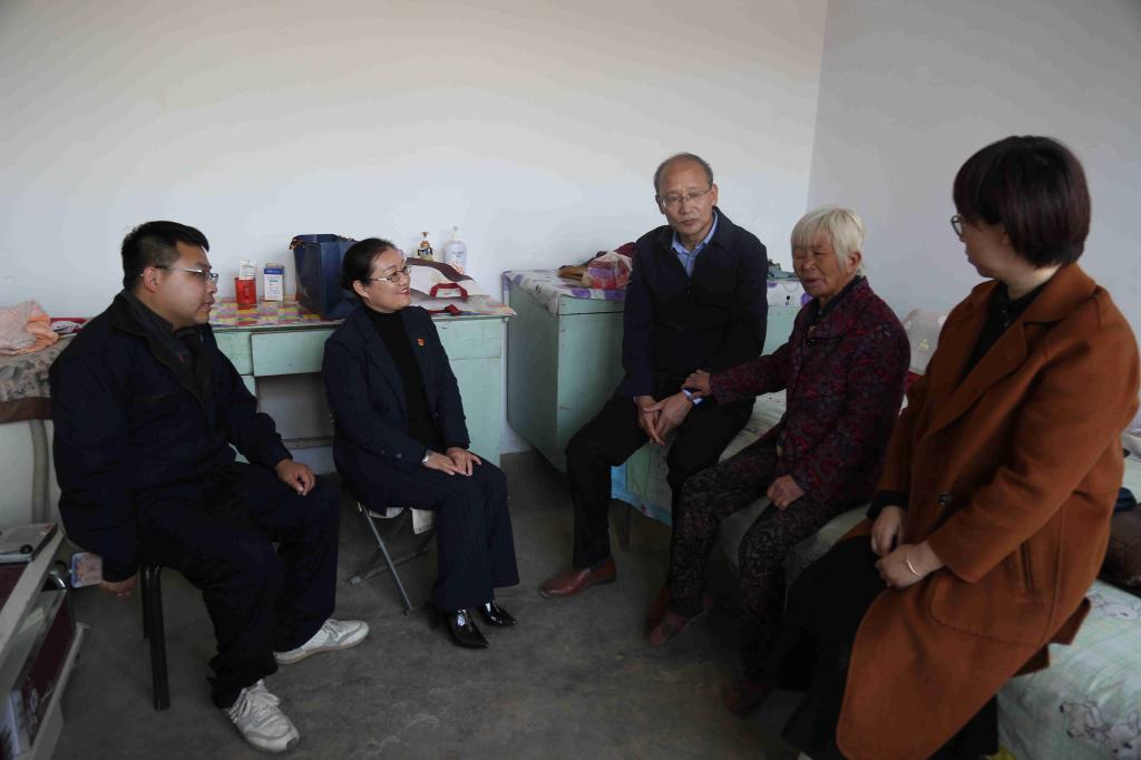 挂牌仪式结束后,校领导和驻村工作队奔赴定点帮扶村进行考察调研。在许家垴村扶贫车间,校领导详细询问村民生产情况,当得知许多村民通过自己勤劳的双手获得了不错的收入后,纷纷表示欣慰并鼓励大家继续努力,为更美好的生活而奋斗。随后,校领导一行深入帮扶村村民家中走访慰问,了解其生产生活情况并带来慰问金。