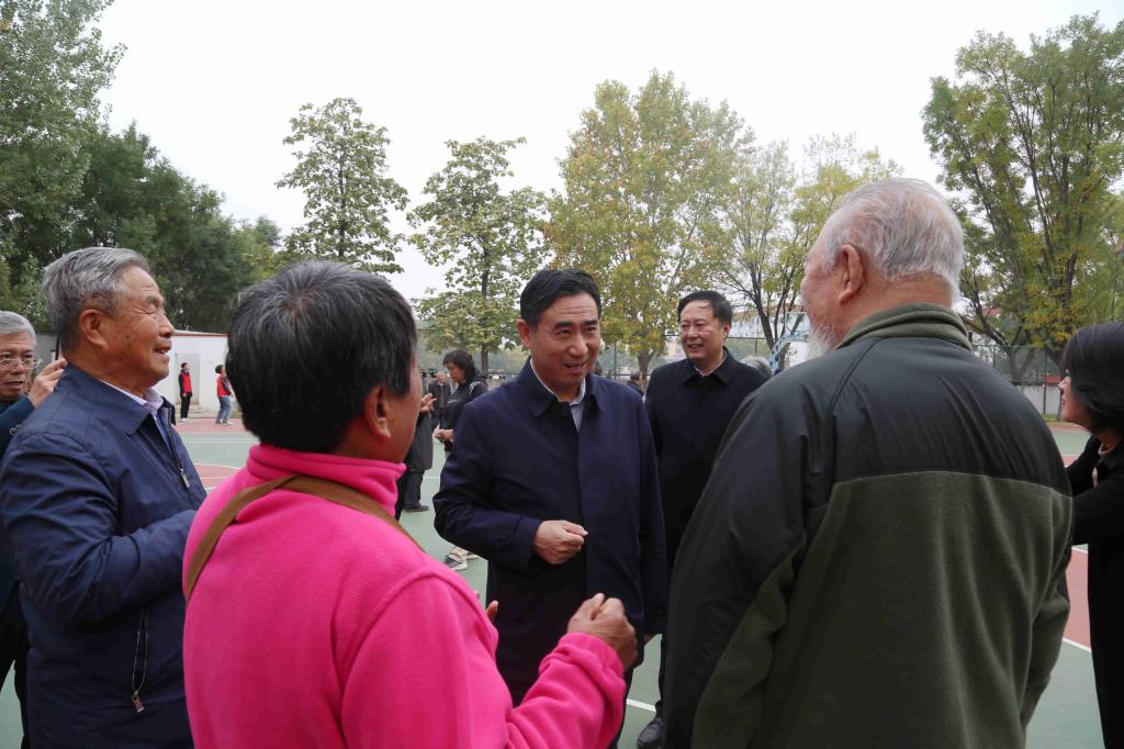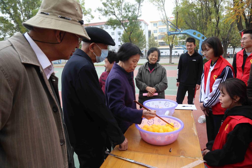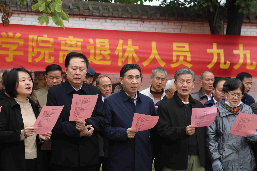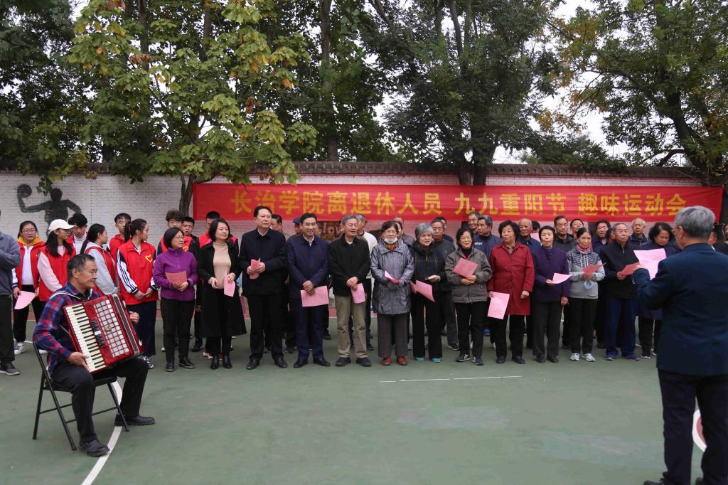 郝勇东、赵水琛现场与百余名老同志兴趣盎然地参加了踢毽子、夹乒乓球、投飞镖、定点投篮、足球射门、打保龄球等一系列集趣味与健身相结合的活动项目,集体合唱《地道战》《歌唱祖国》两首红色歌曲,把全院师生的关怀、祝福与温暖送到老同志的身边,场上呈现一派热闹景象。这次运动会进一步增强了大家的凝聚力和向心力,也让老同志们度过了一个快乐、温馨的重阳节。