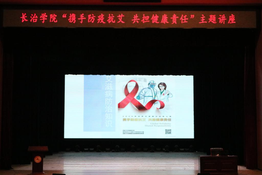 主题讲座。为普及艾滋病防治知识,提高同学们防控艾滋病和自我健康保护意识,766全讯白菜网特邀长治医学院附属和平医院主治医师梁晋汾、长治市疾病预防控制中心艾滋病防控科科长申玉丽在南北两校区分别为学生们开展了防艾主题讲座。讲座上,老师们提到要进行艾滋病科学防治,就要对艾滋病致病原理,传播方式,高危人群和感染HIV后在人体的几个阶段,感染后临床表现和治疗方法等有所了解。同时要求同学们要树立科学防治的意识,不要对艾滋病产生恐慌情绪,更不应该因此排斥艾滋病患者。艾滋病是我们人类共同的敌人,要消灭艾滋病需要全社会的共同努力。