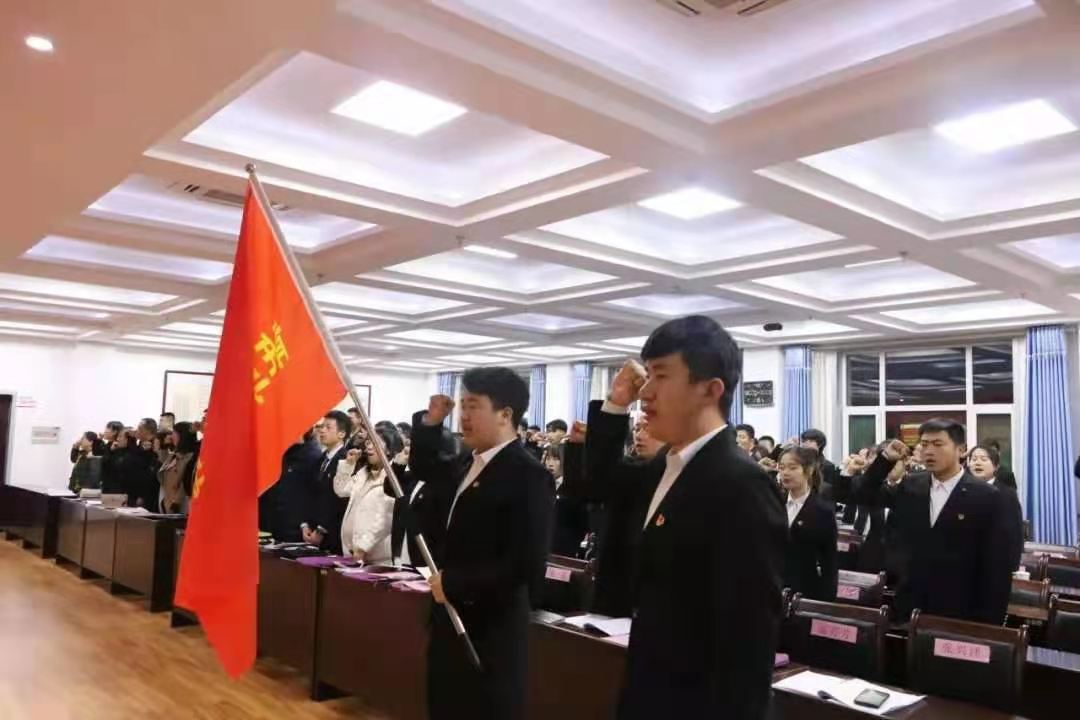 会上,校党委副书记马健宏向766全讯白菜网2020年“青马工程”培训班学员授旗,由李皓宇带领全体学员宣誓。