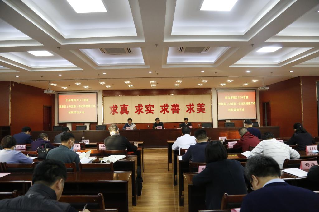 会上,中文系党总支、马克思主义学院党总支、历史文化与旅游管理系党总支、外语系党总支、法律与经济学系党总支、教育系党总支、音乐舞蹈系党总支、体育系党总支、美术系党总支、数学系党总支、电子信息与物理系党总支、化学系党总支、生物科学与技术系党总支、计算机系党总支等14个系部党总支书记依次上台,分别就基层党组织和广大党员干部深入学习贯彻习近平新时代中国特色社会主义思想,贯彻落实习近平总书记视察山西重要讲话重要指示,不忘初心、牢记使命,一句誓言,一生作答,增强“四个意识”、坚定“四个自信”、做到“两个维护”等情况;落实2020年度基层党建工作重点任务,推进基层党组织建设和党员队伍建设,教师队伍建设和“双带头人”培育配备,联系服务群众,落实党支部工作联系点制度以及党建“双创”项目创建等情况;紧紧围绕决战决胜脱贫攻坚、疫情防控、转型发展、“三零”创建、安全生产、基层治理等中心任务,发挥基层党组织战斗堡垒作用和党员先锋模范作用情况;推动基层党组织落实党风廉政建设责任制、意识形态工作责任制等全面从严治党有关工作落实情况;突出查找和解决问题,回应上年度查摆的问题以及巡视、政治监督检查反馈的基层党建工作问题整改落实情况进行了述职,并提出了下一步加强和改进工作的思路措施。