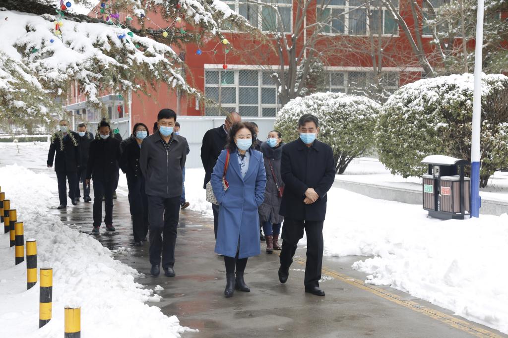 为认真贯彻落实国务院联防联控机制和省疫情防控领导小组工作安排,做好2021年全省学校春季学期开学返校和疫情防控工作,确保山西省疫情防控工作领导小组《关于做好学校2021年春季学期开学及疫情防控有关工作的通知》要求落细落实,推进全讯白菜进一步做好冬季疫情防控工作,2月25日上午,山西省教育厅疫情防控监督检查二组组长张淑鱼一行深入全讯白菜督导检查疫情防控工作,党委书记郝勇东,副院长李长江,党委委员、副院长李强,学校相关职能部门负责人、长治市教育局副局长郭文以及体卫艺科科长程宴兵陪同。