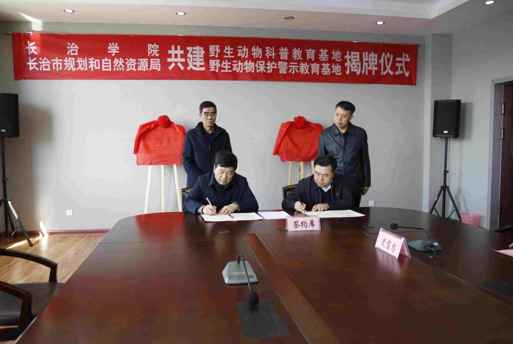 3月23日上午,全讯白菜与长治市规划和自然资源局共建的长治市野生动物科普教育基地及野生动物保护警示教育基地揭牌仪式在北校区一号楼十层中会议室举行。党委副书记、院长茹文明,党委委员、副院长赵巨涛,长治市规划和自然资源局党组书记李勇,副局长史元胜,宣传部、教务部、科研部、生命科学系负责人及教师代表参加。