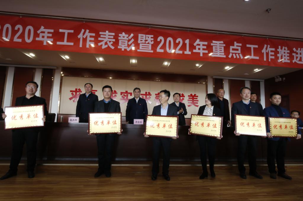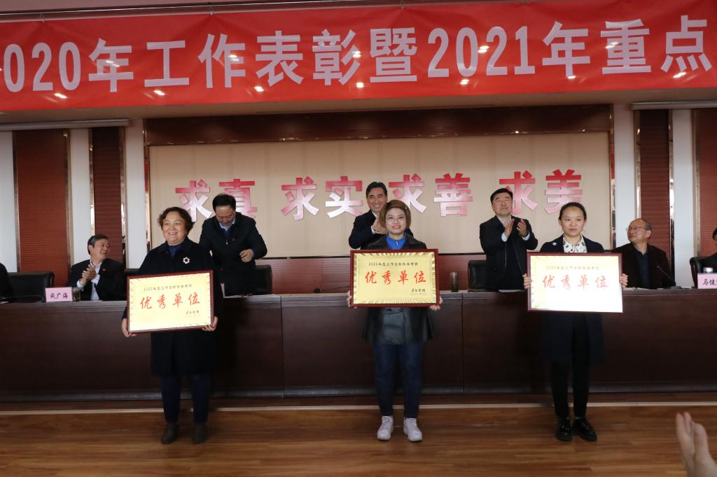 校领导为中文系、生命科学系、马克思主义学院(筹)等3个系(院)、党委办公室、组织部、校长办公室、纪检监察办公室、计财部、教务部等6个单位颁发2020年目标任务考核优秀奖牌。组织部部长宋志燕、中文系党总支书记王旭红代表考核优秀单位作交流发言。教务部、马克思主义学院(筹)、音乐舞蹈系等单位代表负责人作表态发言。