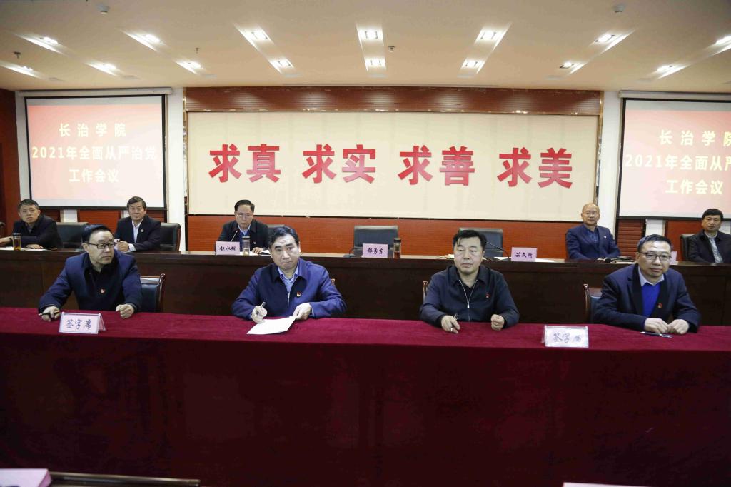 郝勇东要求,今年是中国共产党成立一百周年,是“十四五”规划的开局起步年,要立足新的发展阶段,准确把握推进全面从严治党的新形势、新任务、新要求,进一步压紧压实管党治党责任,持之以恒,久久为功,把学校建设成为全面从严治党的坚强阵地,确保“十四五”开好局、起好步。一是要扎实开展党史学习教育,从百年党史中汲取全面从严治党的智慧力量。中国共产党在领导中国革命、建设、改革的百年奋斗历程中,始终保持自我革命的精神,成为中国人民和中华民族的主心骨,我们要从党的百年历程中,汲取全面从严治党的智慧和力量,站位再提高、责任再压实、措施再细化,不折不扣、扎扎实实把学校的党史学习教育推向深入,真正学出坚定的理想信念,学出为师生服务的宗旨情怀,学出干事创业的责任担当,学出共产党人的清正本色。二是要胸怀“国之大者”,从统筹“两个大局”中保持全面从严治党的政治定力。要加强党对学校的全面领导,在各种风险挑战中保持坚强政治定力,落实好立德树人根本任务。三是强化引领保障,从开局起步的任务要求中强化全面从严治党的责任担当。要保持全面从严治党态度不变、决心不减、尺度不松,进一步强化政治建设的统领作用,一体推进不敢腐、不能腐、不想腐机制建设,把严的主基调长期坚持下去,以全面从严治党的新成效引领保障学校在“十四五”的新征程上,蹚出一条应用转型发展的新路,各项事业取得新发展。