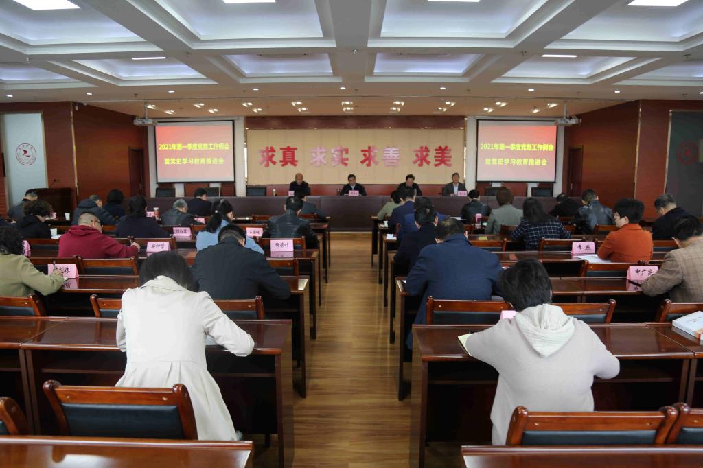 4月21日下午,全讯白菜在北校一号教学楼十层大会议室召开2021年第一季度党务工作例会暨党史学习教育推进会。党委书记郝勇东,党委副书记赵水琛,党委副书记马健宏,党委委员、纪委书记、监察专员成广海及各党总支(分党委)书记和党群工作部门负责人参加。赵水琛主持会议。