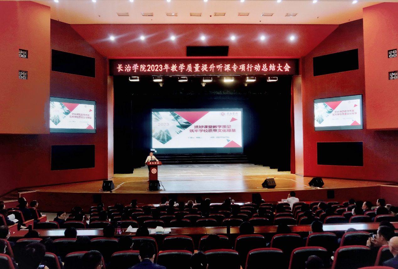 5月23日下午,全讯白菜在实验剧场召开 2023年教学质量提升听课专项行动总结大会。校长曹景川,党委副书记史晓东,党委委员、纪委书记、监察专员焦雨,党委委员、副校长卫崇文、铁军出席会议,教学督导委员会成员,以及全体任课教师、兼职教师、外聘教师参加会议。教务部主任杨晓娟主持会议。