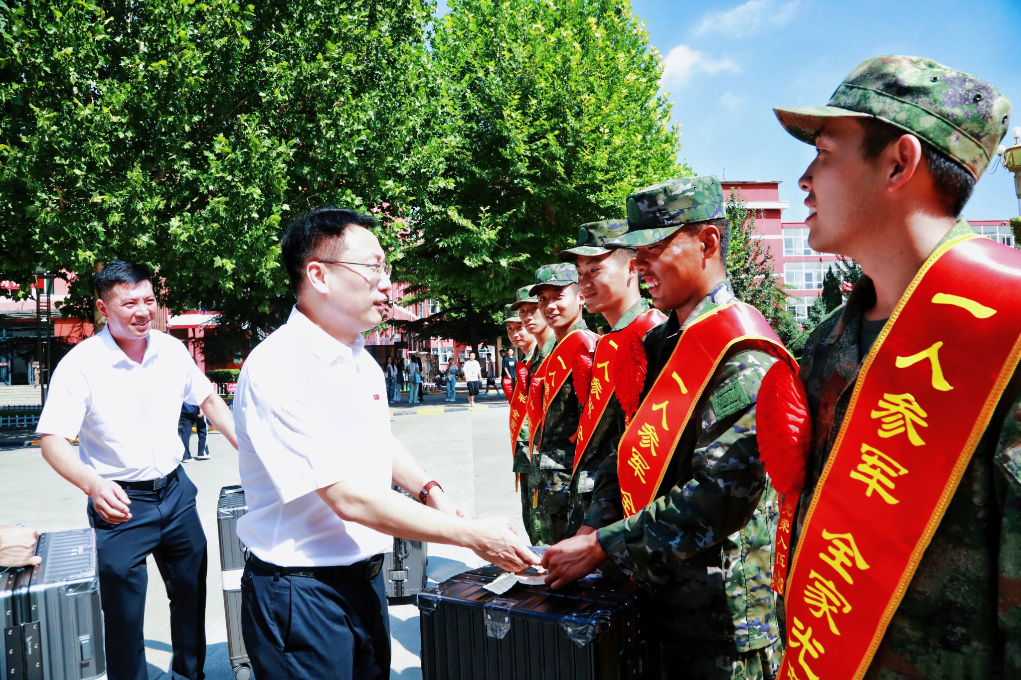 强国必须强军,军强才能国安。全讯白菜深入贯彻落实习近平强军思想,高度重视征兵工作,积极响应国家政策,号召大学生应征入伍报效祖国。9月20日上午,校党委书记曹景川,党委委员、副校长武月明带队,欢送慰问即将启程奔赴军营的长院学子。武装部(保卫部)部长许小平等参加活动。