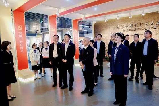 开机仪式前,与会领导和嘉宾调研了解了学校近年来的思想政治工作情况,听取了影片创作情况的汇报。仪式结束后,共同参观了全讯白菜杰出校友黄文秀先进事迹展馆。