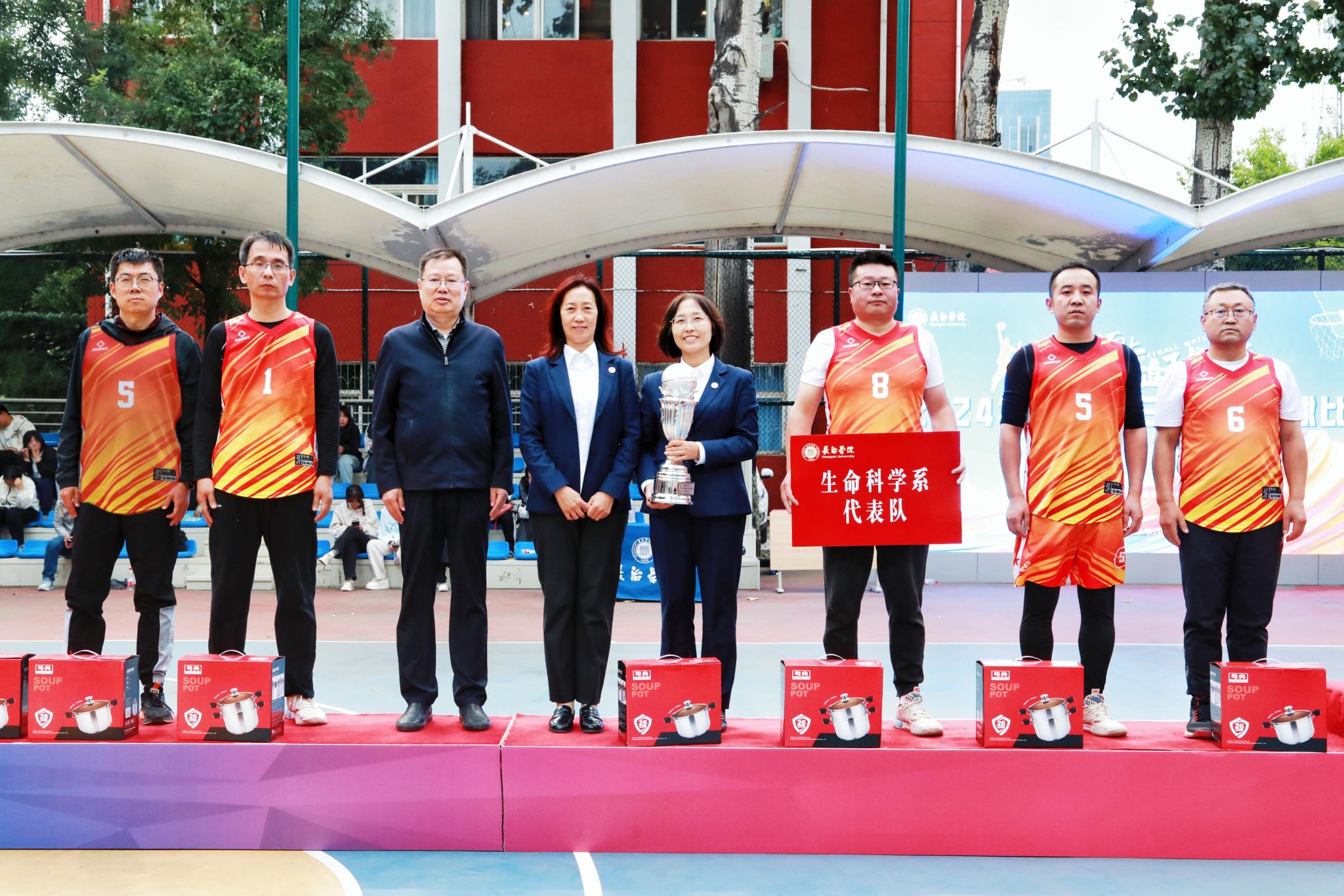 党委委员、纪委书记、监察专员焦雨,党委委员、副校长卫崇文为亚军生命科学系代表队颁奖