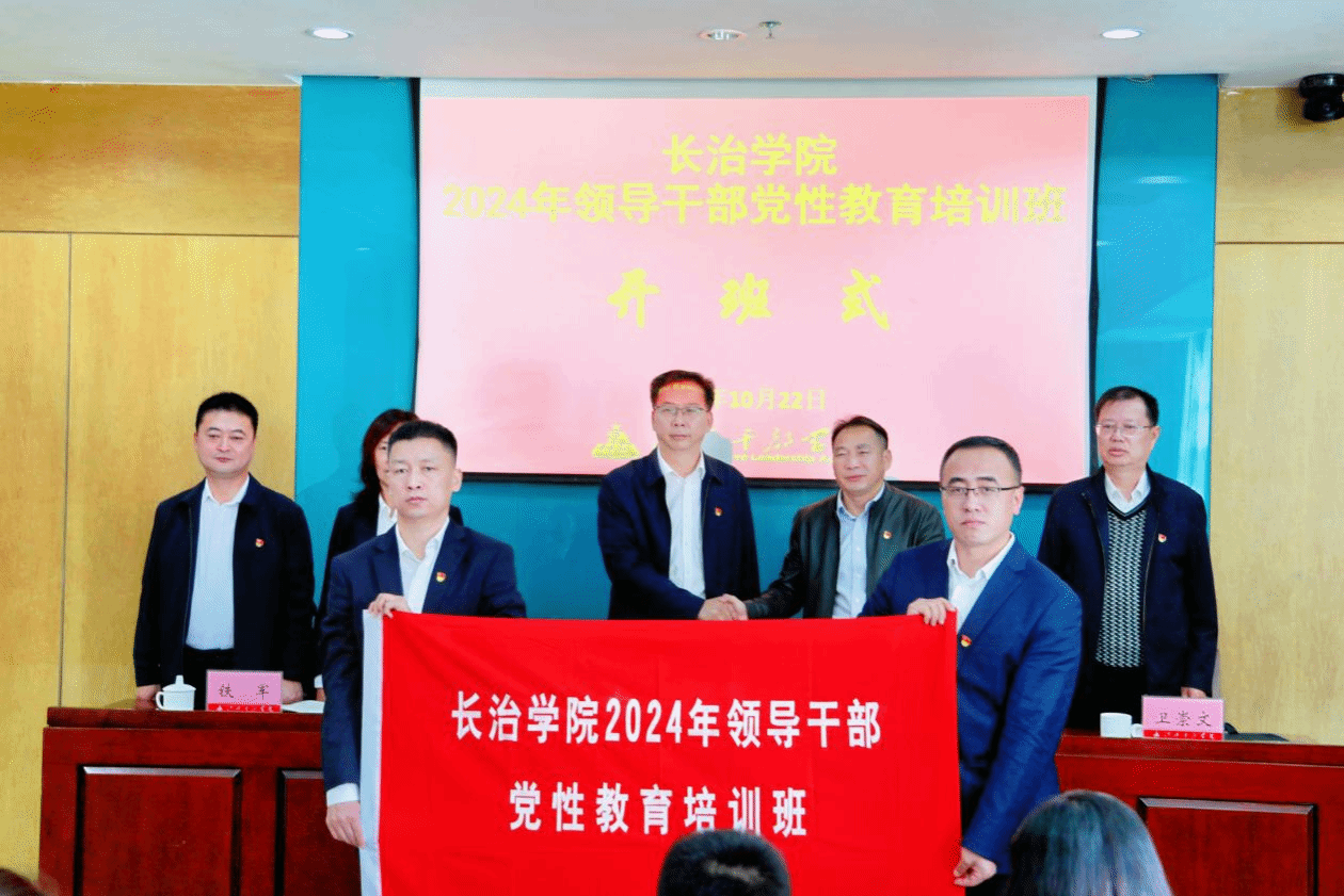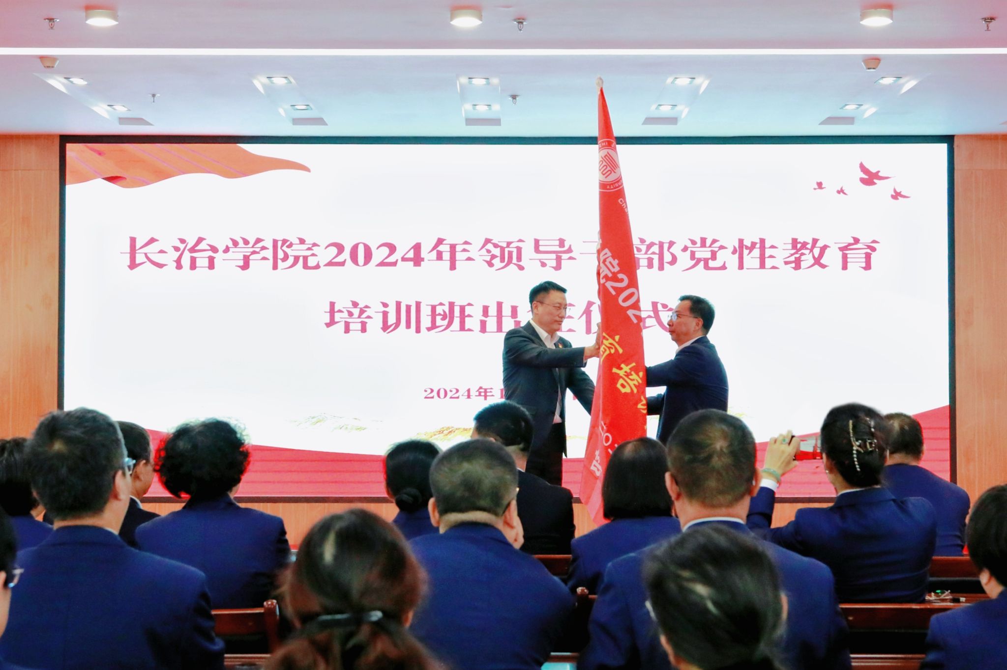 党委书记曹景川为培训班班长、党委副书记史晓东授旗