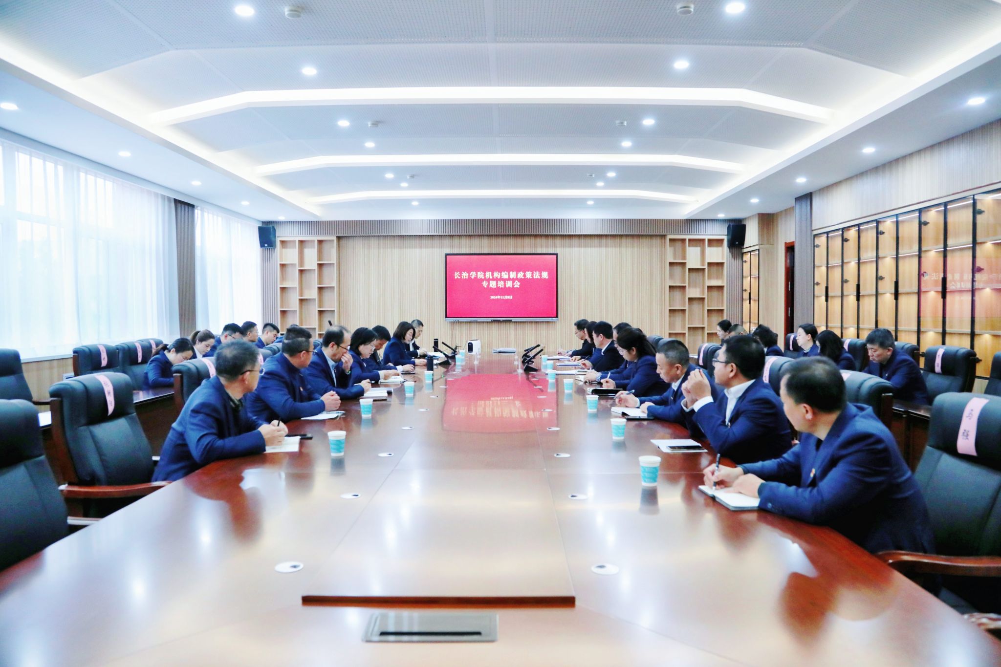 为进一步提升学校机构编制规范化水平和干部履职用权能力,11月8日,学校召开机构编制政策法规专题培训会。省编办法规处副处长闫达开作专题辅导。校领导史晓东、焦雨、铁军,校党委办公室、校长办公室、纪检监察机构、组织部、人才工作部以及人力资源部的全体同志参会。会议由组织部、统战部部长顼迎芳主持。