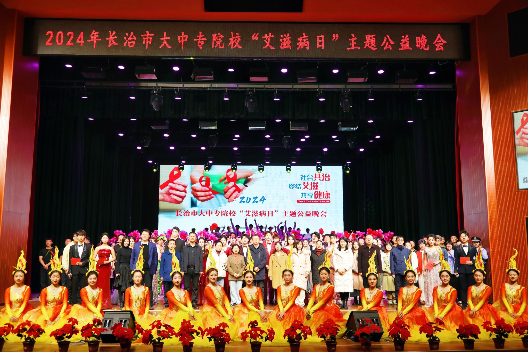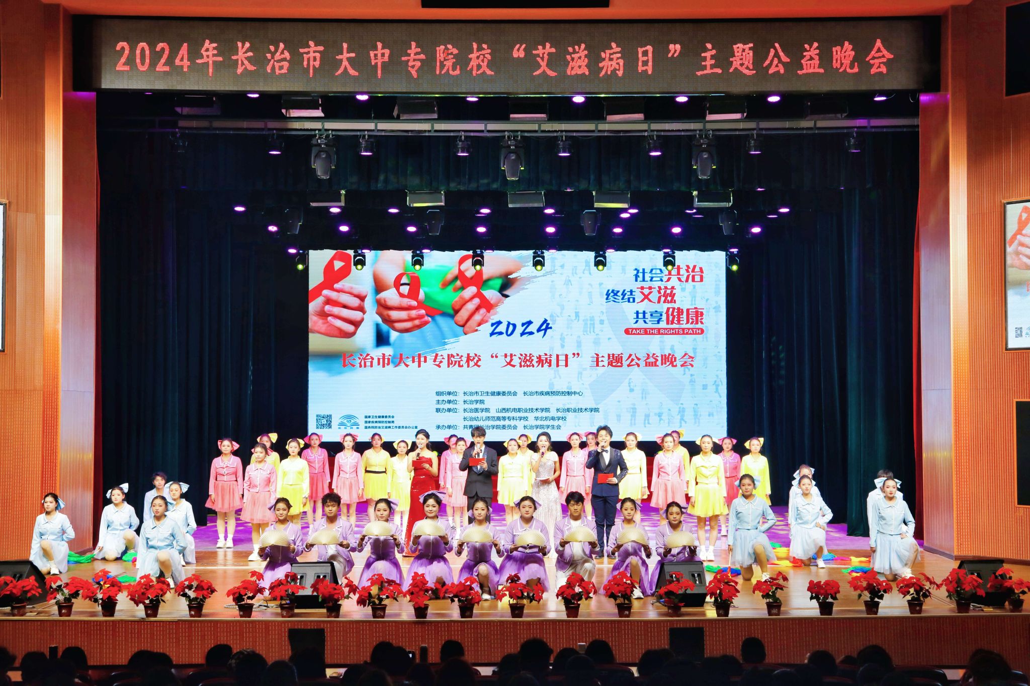 共筑防艾长城,传递爱与希望。在第37个世界艾滋病日到来之际,为进一步提高青年大学生对艾滋病的认识与防范意识,11月26日晚,全讯白菜在北校区实验剧场举办“社会共治,终结艾滋,共享健康”艾滋病日主题公益晚会。晚会由长治市卫生健康委员会、长治市疾病预防控制中心、766全讯白菜网主办,长治医学院、山西机电职业技术学院、长治职业技术学院、长治幼儿师范高等专科学校、华北机电学校联办,共青团766全讯白菜网委员会、766全讯白菜网学生会承办。