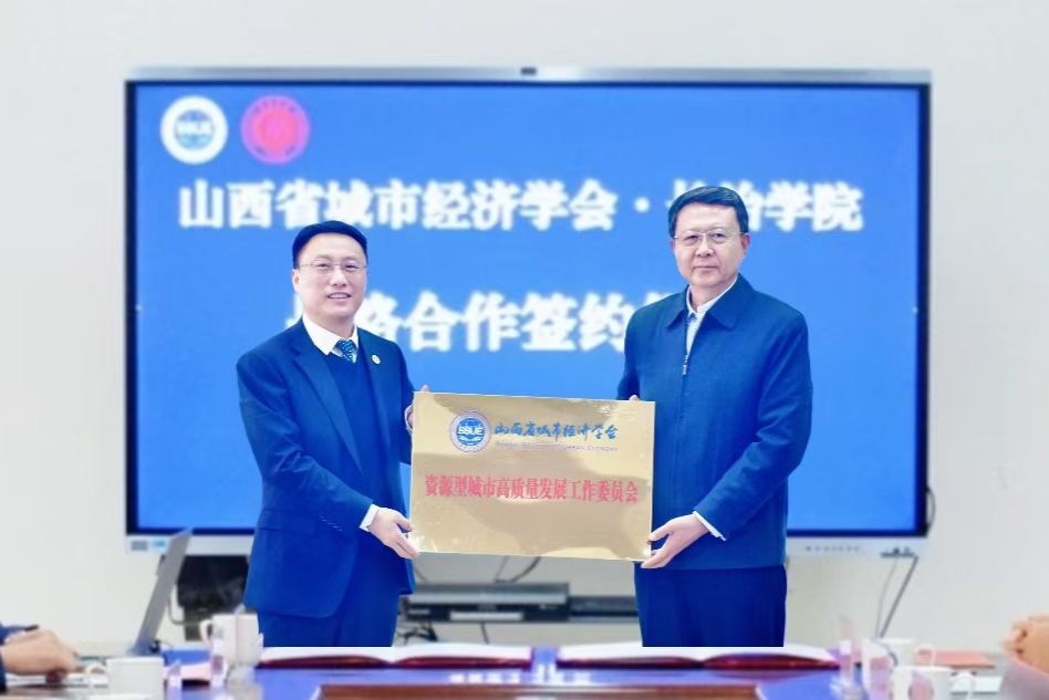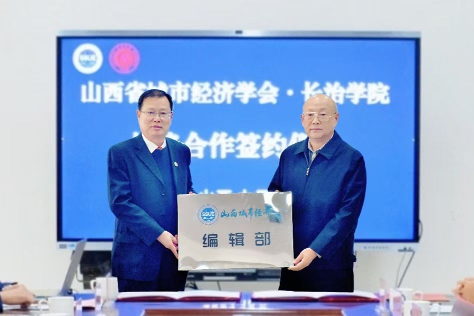 张璞和张勇代表山西城市经济学会向766全讯白菜网授予“山西省城市经济学会资源型城市高质量发展工作委员会”与“《山西城市经济》编辑部”牌,曹景川和卫崇文代表766全讯白菜网接受了牌匾。铁军和郭长风代表双方共同签署了《山西城市经济学会·766全讯白菜网战略合作协议》。