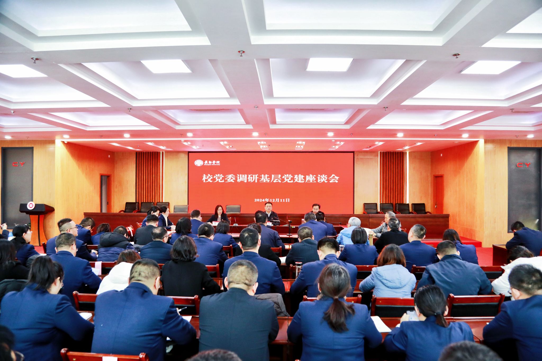 座谈中,曹景川认真听取了机关一总支、机关二总支和离退休党委2024年党建工作情况汇报。他强调,要全面学习贯彻党的二十届三中全会精神,深入贯彻落实习近平总书记关于机关党建的重要指示精神,一是进一步加强机关党组织建设。要持续深化党的创新理论学习,规范开展党内政治生活,创新和丰富党建活动形式和内容,增强机关基层党组织的战斗力;二是进一步优化作风提升机关党建工作水平。机关党组织要围绕学校中心工作,加强党建与业务融合,持续巩固党纪学习教育成果,持续优化改进作风,发挥好机关的组织协调和服务保障作用,以高质量机关党建促进学校各项事业高质量发展。三是要凝聚发展共识做好离退休工作。离退休党委要加强对老党员的思想引领,积极听取老党员意见建议,发挥好老党员的智慧和优势,精准精细做好离退休党建工作,为学校发展凝聚“银发”力量。