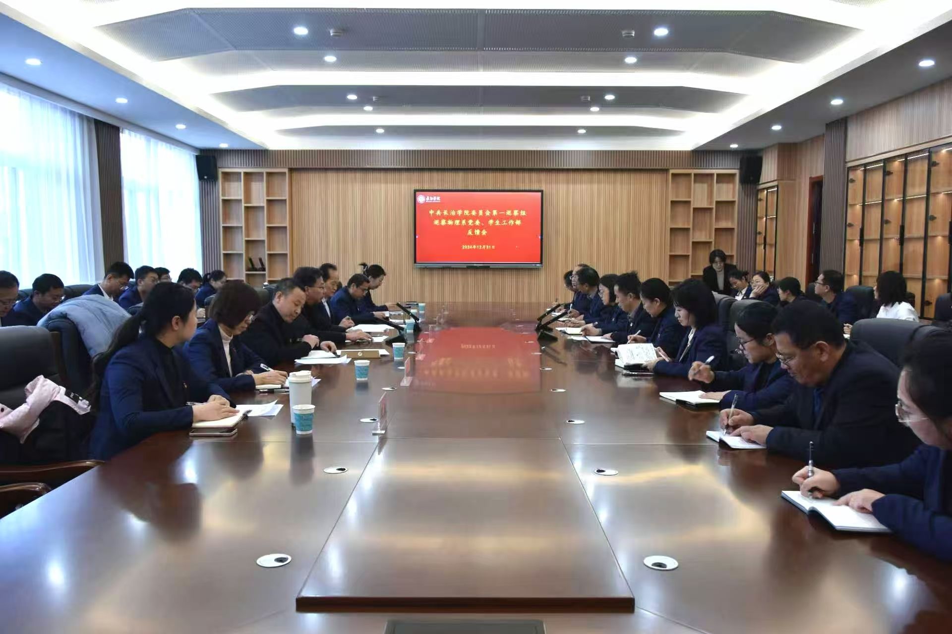 第一巡察组组长赵晋耀、第二巡察组组长王志军、第三巡察组组长刘隆分别向物理系党委与学生工作部、化学系党委与后勤部、数学系党委与基建部反馈了巡察意见,被巡察单位负责人分别就做好巡察整改工作作了表态发言。