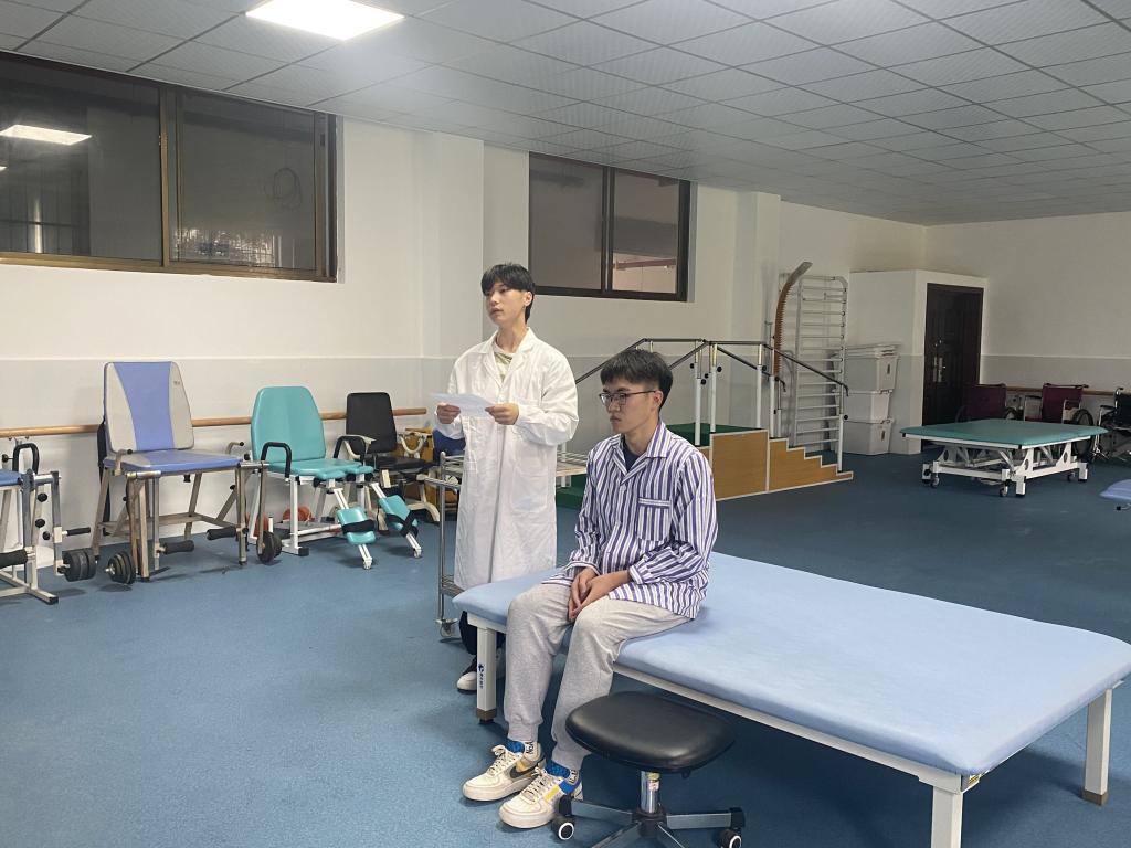 比赛分为理论与技能两个项目,5月25日通过云课堂开展了理论项目,共计100道单选题,题型知识点来自康复治疗师执业考试大纲;5月27日在康复实训室3102开展技能项目,技能项目为康复临床常见案列分析及技能操作,由胡鸿雁、肖娟、龚莉玲三位专业教师担任评委。