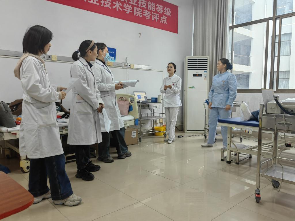 2024年10月12日下午,护理教研室邀请教务处刘科长,在beat365在线唯一官网党总支朱书记、沈院长带领下,组织廖老师、毛老师等比赛经验丰富的护理专业教师共计九人,对参加由省卫健委主办的湖北省职业院校护理专业教师教学技能竞赛的两位教师备赛情况进行考核指导。