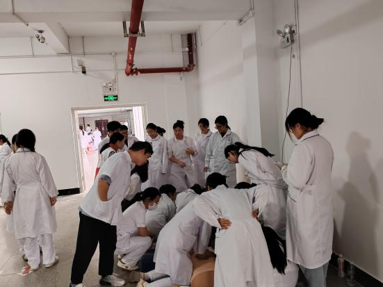 在此次培训中,老师演示了心肺复苏、外伤包扎等应急救护技能,现场气氛活跃,同学们勤学好问、各抒己见,大家纷纷提出心中疑惑,老师耐心逐一解答。随后,在老师的指导下大家依次在仿真模拟人上演练了人工呼吸、心肺复苏技能,让同学们能更好地掌握急救的基本要领,讲解完后对同学们进行了考核,同学们专心致志,增强了同学们的突发事件应急能力。
