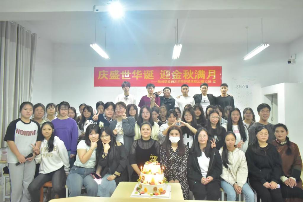 为弘扬班级凝聚精神,增强师生们的凝聚力,同时庆祝中国的国庆节和中秋节。22护理13班师生于9月27日晚上八点欢聚在3315教室,举行“庆盛世华诞,迎金秋满月”活动。