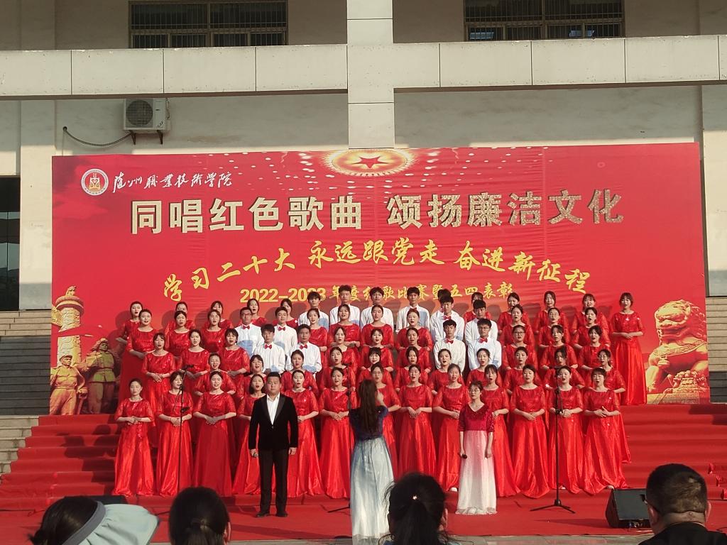 为贯彻落实党的二十大精神,激发学生爱国情怀,展示学生良好的精神风貌,2023年5月11日下午beat365在线唯一官网在图书馆门前举办了“同唱红色歌曲,颂扬廉洁文化” 红歌比赛暨2022-2023年度五四表彰。本次活动由共青团beat365在线唯一官网委员会主办,各二级学院共同承办。