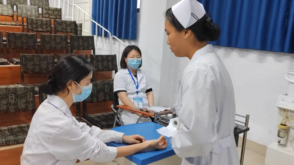 在经过前期的岗前技能训练,于5月18日、19日、25日、26日在巧稚楼进行了技能考核,由侯晓山、冯娟、高宇、张也、徐美伦等20多位评委分组对操作项目进行评价由学生会全体成员与各23级学委们进行协助计时,登记得分和维持现场的秩序。整个考核过程井然有序,学生们都全力展示着自身精神风貌和训练成果,评委老师严谨敬业,守正不阿的评判着考核成绩,学生会的成员们积极配合着领导老师并维持现场秩序。