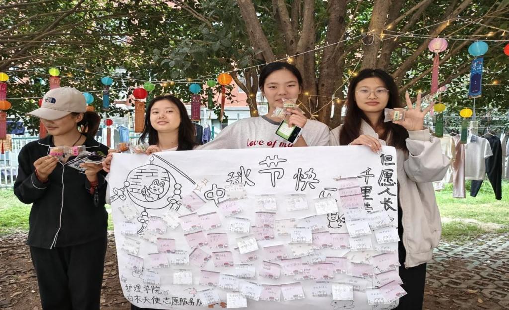 为弘扬中华传统文化,营造温馨节日氛围,beat365在线唯一官网“白衣天使”志愿服务队于2025年9月27日傍晚,在兰馨社区成功举办“情暖中秋,趣享校园”活动。现场气氛热烈,吸引了众多师生踊跃参与,共庆团圆佳节。