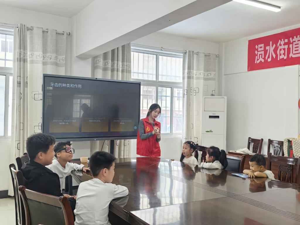 活动现场瞬间化身为口腔健康的奇幻课堂。志愿者们化身“孩子王”,用充满童趣的定制PPT和动画短片,将复杂的口腔知识变得直观可感:牙齿化身“小精灵”,细菌则是搞破坏的“小怪兽”。在生动的故事线中,志愿者们用浅显的语言,将正确的刷牙步骤、龋齿的危害以及甜食管控的重要性一一拆解,让孩子们在欢声笑语中轻松掌握了护齿秘诀。