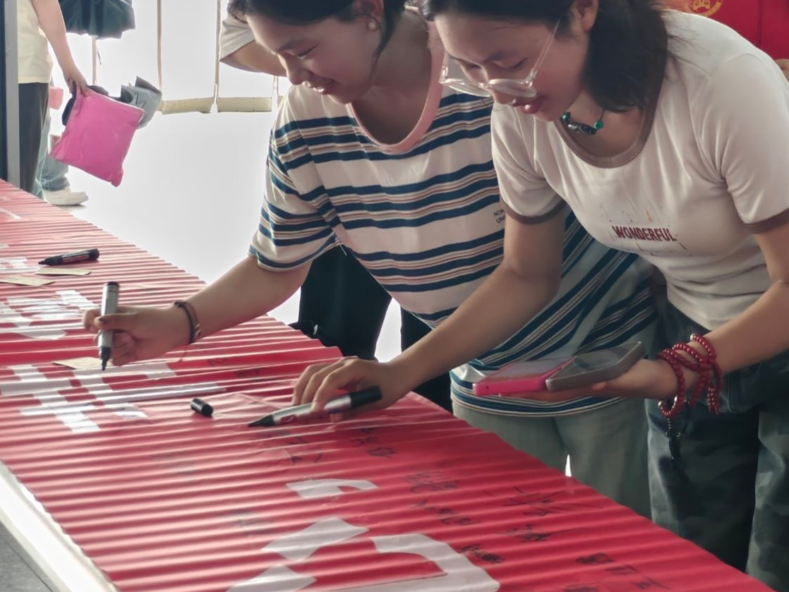 活动尾声,一条印有活动主题的红色长卷徐徐铺开,师生们有序排队,郑重签下自己的名字。笔尖划过之处,既是个人承诺的见证,更是集体行动的宣言。beat365在线唯一官网党总支副书记朱胜利在签名时寄语:“节约不仅是一种美德,更是一份责任。希望每个人都能将‘光盘’化作日常习惯,让文明用餐成为校园新风尚。”签名墙上密密麻麻的名字,如繁星汇聚,照亮节约之路。