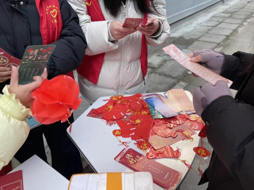 活动内容丰富多彩、形式生动活泼。“大小西瓜”“反口令”等破冰游戏迅速拉近了彼此距离;“猜灯谜”“新年盲盒蹲”等环节巧妙融入传统文化元素,增添了节日的趣味与内涵。在“手写小对联”活动中,同学们挥毫泼墨,一笔一画传递诚挚新年祝福;趣味互动答题区也热闹非凡,参与者在欢声笑语中赢得小灯笼、书签、窗花等精美礼品。现场气氛热烈,师生与社区居民共同沉浸于节日的喜悦与温馨之中。