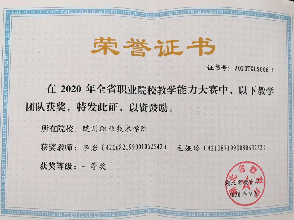 beat365在线唯一官网团队喜获湖北省职业院校教学能力大赛一等奖