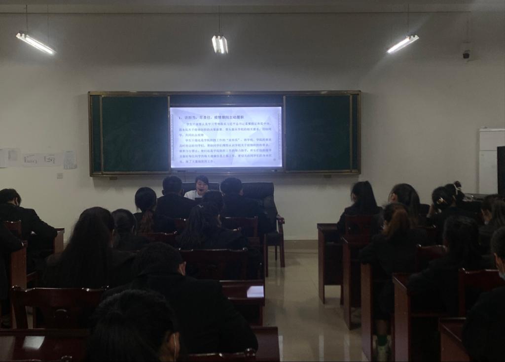 本次课程以“封控状态下大学生干部的职责和担当”为主题,朱海豫老师从三个方面为我们讲述了学生干部的职责与担当,第一学生干部在疫情期间要做好表率,起到带头作用。第二在大学生活中学生干部应该不断提升自己,挑战自己,让我们的大学生活变的更充实。第三作为学生干部,要懂得担当,有责任心,积极主动,坚持不懈。朱老师从各个方面由浅到深,语言生动,与同学们进行互动,提问。同学们听课非常认真,仔细做笔记,课堂非常活跃。