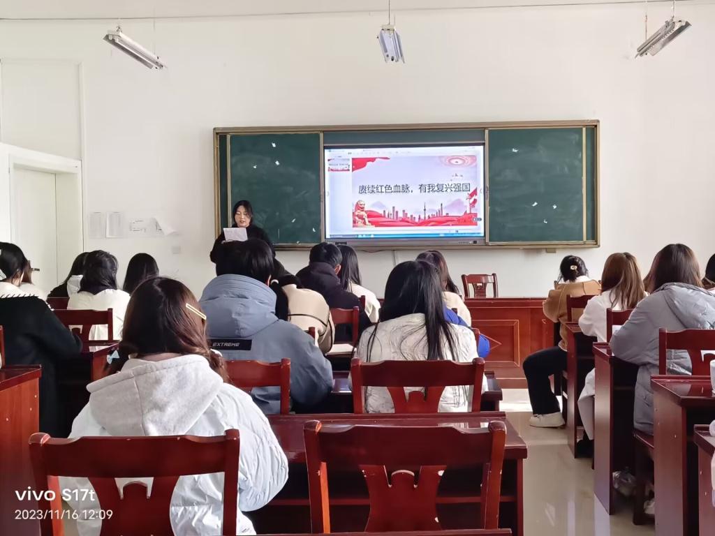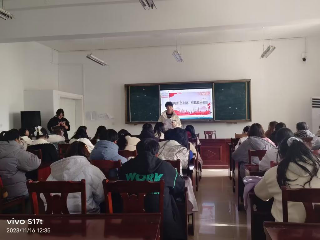 为深入贯彻落实习近平新时代中国特色社会主义思想和党的二十大精神,团结引领广大团员永远跟党走、共筑中国梦,为深入推进引导学生弘扬红色文化、传承革命精神,我院团总支于2023年11月14日在巧稚楼3220教室组织开展了以“赓续红色血脉,复兴强国有我”为主题的团日活动,参与此次活动的有beat365在线唯一官网团总支书记余莎老师,22、23级各班新团支书及办公室部全体成员。