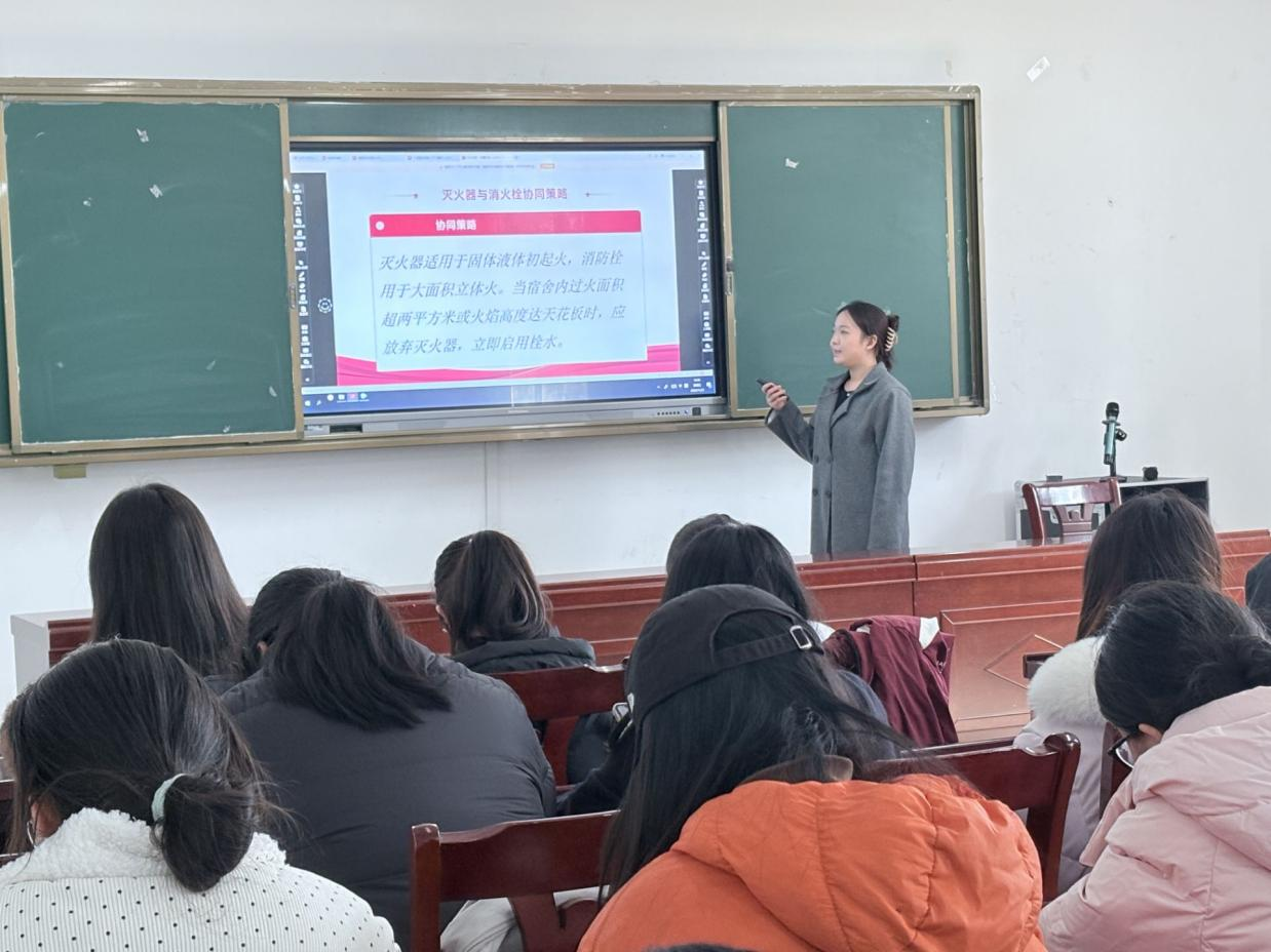 活动在庄严的团歌声中拉开序幕。同学们首先观看了消防安全主题宣传片,强化了对生命的敬畏与对安全的责任意识。随后的PPT讲解环节,系统普及了火灾预防、应急逃生、自救互救等实用知识,为同学们筑牢消防安全理论基础。