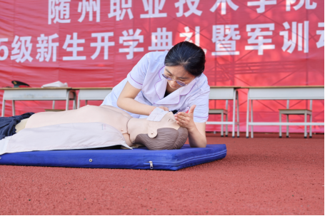 为普及应急救护知识,提升新生应对突发事件的自救互救能力,2025年9月24日下午,beat365在线唯一官网四位专业教师应武装部邀请,在新生军训场地为2025级全体参训学生带来了一场生动而实用的心肺复苏(CPR)与创伤救护技能培训展示。
