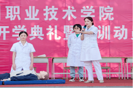 在随后的实操演示环节,老师们利用专业模拟人教具,分步骤、慢动作清晰地展示了判断意识、呼救、胸外按压、开放气道、人工呼吸等完整的心肺复苏流程。讲解深入浅出,操作规范精准,吸引了全体新生的高度关注。针对军训期间可能出现的意外创伤情况,老师们还现场演示了止血、包扎、固定等基本创伤救护技能,并介绍了不同伤情的处理原则和技巧。