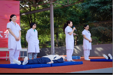 演示过程中,老师们不仅注重技术要领的传授,更不断强调“时间就是生命”的急救理念和人文关怀精神。他们鼓励同学们在确保自身安全的前提下,勇于并善于向需要帮助的人伸出援手。现场新生认真观摩,积极互动,气氛热烈。